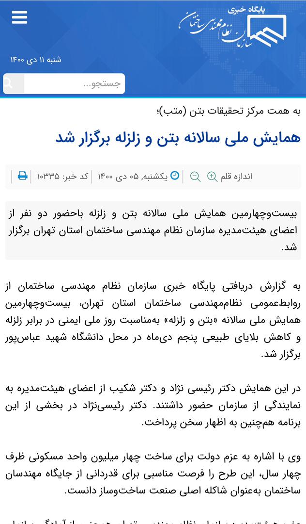 همایش ملی سالانه بتن و زلزله برگزار شد