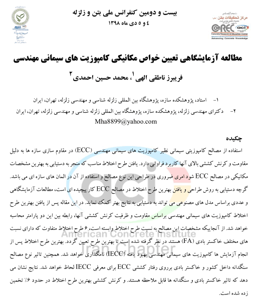 مطالعه آزمایشگاهی تعیین خواص مکانیکی کامپوزیت های سیمانی مهندسی
