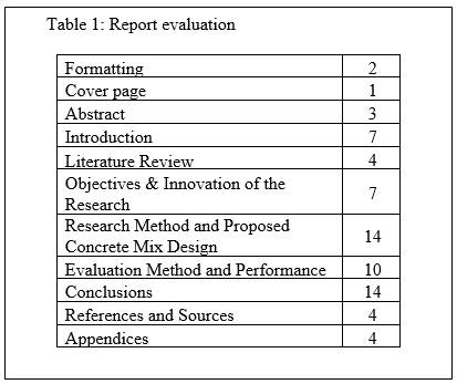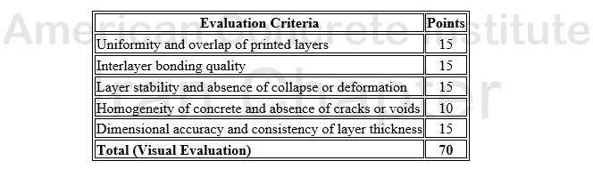 المان چاپشده سهبعدی بتنی بر اساس معیارهای زیر مورد ارزیابی قرار خواهد گرفت: